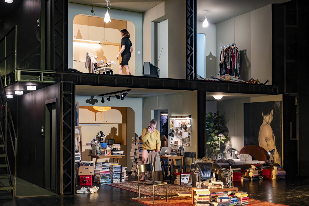 Auf und zwischen zwei Stockwerken begegnen sich Menschen, deren Leben ganz unterschiedlich «nachhallen». Alle drei sind grosse Romantiker*innen auf ihre eigene Weise. Mit grösseren wie kleineren Verletzungen. Die eigenen vier Wände bieten Schutz vor dem, was da draussen Leben heisst. Und genau dort, in ihrem Bedürfnis nach Aufgehoben- und Zugehörigsein, finden und erkennen sie sich jeweils wieder.